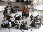 helmet, chest protector, gloves, pads, trousers, stick, skates and plenty